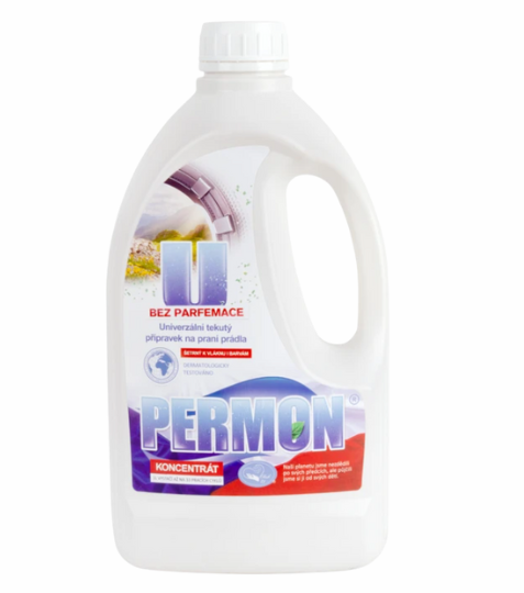 PERMON - U je ekologický, vynikající univerzální, tekutý, vysoce koncentrovaný přípravek na praní barevného i bílého prádla (kromě vlny a hedvábí) ve všech typech praček při teplotách 10 - 95 °C. Optimální teplota praní je 40 °C, u silně znečištěných tkanin (utěrky) 60 °C. Obsahuje složky účinně chránící barvy. V kombinaci s bělící složkou Permon - B Percarbonat i na bílé prádlo. Obsah 1,5 l výrobku je na 33 praček při dávkování 45 ml na 4,5 kg prádla. Vypere i velmi znečištěné prádlo. Proto, prosím, vyzkoušejte, kolik ml Permonu U vypere vaše prádlo. Ze zkušeností našich spotřebitelů stačí 20 ml pracího gelu Permon U na běžné praní prádla, potom je 1,5 l Permonu U na 75 praček. Tkanina je po vyprání na dotek měkká, neboť se na ní neusazují nerozpustné vápenaté a hořečnaté soli. Permon U si hravě poradí s každodenním prádlem – ať už jde o barevné oblečení, utěrky, ložní prádlo nebo bílé textilie (v kombinaci s bělicí složkou). Vysoká prací síla z něj dělá skutečný základ ekologického praní. Při běžném dávkování 45 ml na jednu prací dávku vystačí 1,5l balení na 33 praní. Mnozí zákazníci si ale vystačí i s 20 ml, čímž se počet dávek zvyšuje až na 75. Díky šetrnému složení bez parfemace (v případě bezvonné varianty) a úplné vymáchatelnosti z vláken se Permon U hodí i pro praní oblečení pro citlivou pokožku a alergiky.