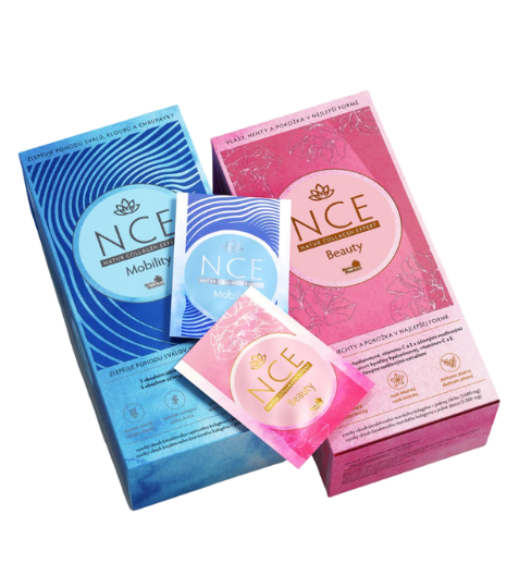 NCE Natur Collagen Expert Mobility - Hydrolyzovaný vepřový kolagen, extrakt kozince blanitého (Astragalus propinquus), extrakt břízy bělokoré (Betula pendula), extrakt přesličky rolní (Equisetum arvense), extrakt pelyňku estragonu (Artemisia dracunculus), aroma, barvivo (sušená šťáva z červené řepy), sladidla: acesulfam K