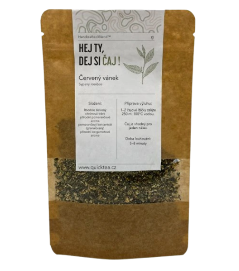 Červený vánek je rooibosová směs, která staví na jednoduché a velmi pitelné kombinaci: červený rooibos, citronová tráva a citrusové tóny pomeranče s bergamotem. Vzniká tak čaj, který je jemný, svěží a lehce ovocný – bez zbytečné těžkosti.