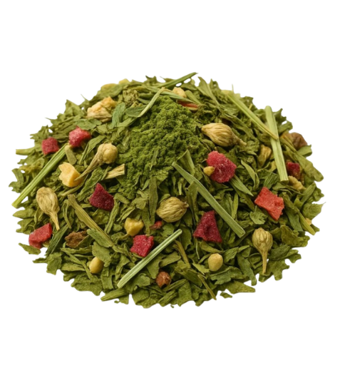Slova nestačí. Travnatě svěží Matcha Hana se tu potkává se zemitě nasládlou macou, sametovou hloubkou cordycepsu a pikantní jiskrou zázvoru. Výsledkem je harmonický šálek s čistou, energickou chutí a smaragdově zeleným nálevem.
