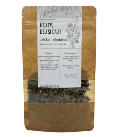 QuickTea Jablko – Meduňka – ovocno-bylinný čaj 100 gSkladem246 Kč/ ks219,64 Kč bez DPH