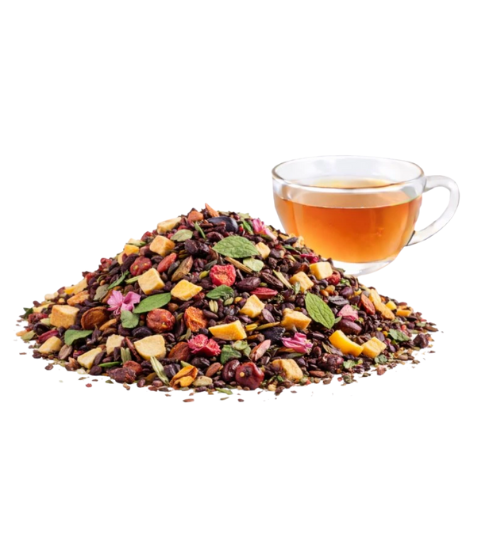 Chuť je plná, ovocná a lehce kořeněná. Ibišek se šípkem dávají výraznější barvu i kyselinku, jablko a citrusy chuť zaoblují a skořice zůstává spíš v pozadí jako jemný zimní akcent. Čaj je vhodný pro večerní popíjení i dlouhé zimní chvíle.