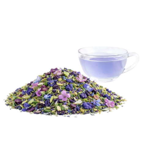 Ledový zázrak je směs, která ozvláštní každý horký den. Díky klitorii a slézu vzniká při cold brew přípravě přirozeně modrý nálev. A to nejlepší? Pokud přidáte citronovou šťávu, nálev se vám promění do růžové až fialové barvy. Je to malý „čajový trik“, který baví a zároveň krásně vypadá.