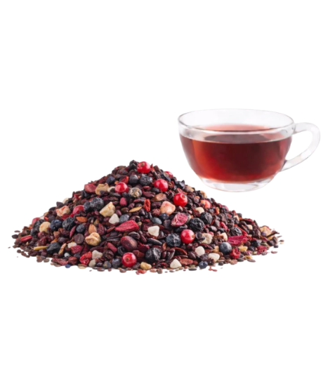 Půlnoční zahrada je ovocná směs inspirovaná temnými plody a večerní atmosférou. Bez, červený a černý rybíz spolu s borůvkami vytvářejí hluboký, tmavý nálev, který zaujme už na pohled.
