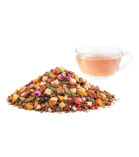 Směs je chuťově sladší, a proto je výborná i pro přípravu ledového čaje – po vychlazení působí ještě svěžeji a ovocné tóny krásně vyniknou.