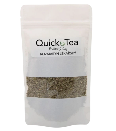 Doplněk stravy QuickTea Rozmarýn Lékařský 30 g. Rozmarýn je aromatická stálezelená bylina, která je oblíbená pro své silné aroma a široké využití v kuchyni i léčitelství. Jeho jehlicovité listy mají výraznou, lehce nahořklou chuť s nádechem borovice a citrusu. Rozmarýn se často používá k dochucení masitých pokrmů, zejména jehněčího, kuřecího a ryb, ale také se skvěle hodí do omáček, polévek a na pečené brambory.