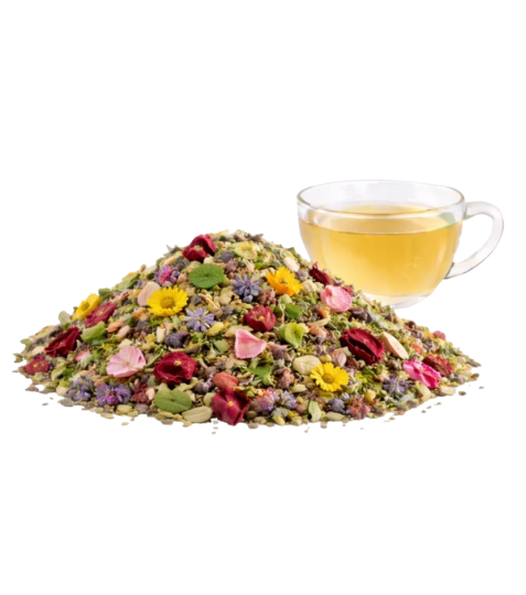 Chuť je květová, jemně bylinná a lehce nasládlá. Meduňka a růže tvoří klidný základ, mateřídouška s dobromyslí přidávají bylinnou hloubku a ibišek se podílí spíše na barvě a lehké svěžesti než na kyselosti. Směs je vhodná pro večerní popíjení, kdy chcete zpomalit a naladit se na klid.