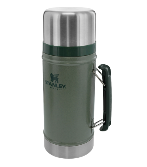 Termoska Legendary Classic značky Stanley v zelené barvě je určena na jídlo a má obsah 940ml.Při zachování rozměrů předchůdce nabízí o 200ml větší objem a lepší termální vlastnosti, kompaktnější design, rukojeť a logo.